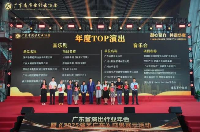 今日,由广东省演出行业协会主办的《2025演艺广东》成果展示活动圆满落幕,深圳音乐厅再度实力出圈,一举斩获年度TOP演出、年度最佳公益演出项目、年度创新以及年度影响力剧院四项大奖。这份亮眼的成绩单,既是行业对深圳音乐厅持续深耕艺术品质、践行社会责任、勇于创新突破的高度认可,更是深圳音乐厅以文化之力赋能城市发展、迎接APEC“中国年”的生动实践。