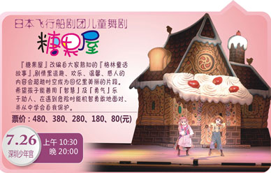 『糖果屋』改编自大家熟知的『格林童话故事』、亨赛尔与格蕾特尔这对兄妹在森林中玩耍迷了路、而被一间充满香味的糖果屋给吸引过去,没想到是坏心的巫婆故意引诱他们并且将他们囚禁起来。这对兄妹是否能善用他们的「智慧」与「勇气」,逃出巫婆的魔掌呢!?尽請期待飛行船的舞台表現。