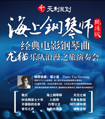 《海上钢琴师》里所有的钢琴音乐是这场音乐会的主打,激烈的斗琴、优美梦幻的华尔兹、黑人钢琴家的爵士钢琴曲……这一曲曲令人难忘的经典音乐将被杰出的钢琴家谭小棠一网打尽!这是一定要到音乐会现场才能欣赏到的激动人心的钢琴演奏。