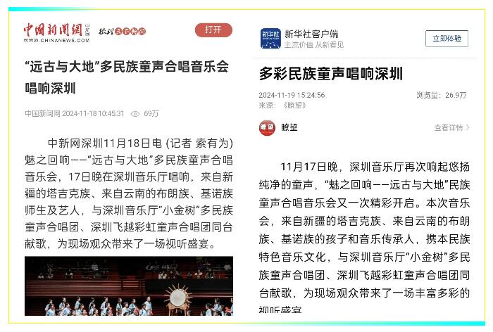 Shenzhen Daily则用视频的方式将这场音乐会的精彩瞬间以直观、生动的方式记录下来。这些视频不仅捕捉到了孩子们在舞台上的精彩表现,还展现了他们排练、互动以及幕后准备的点点滴滴,让观众更加全面地了解了这场音乐会的台前幕后。