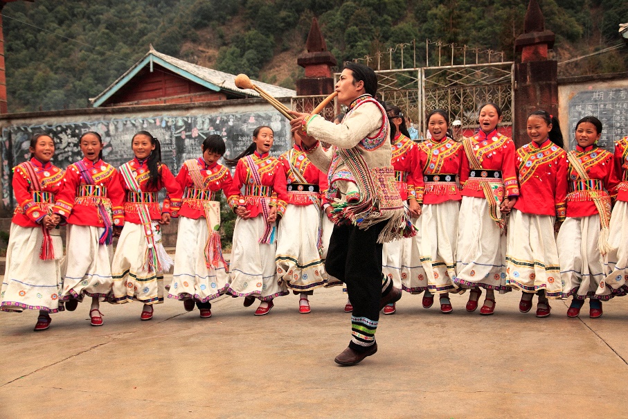 Lisu minority, Yonggang Wang was born in a village named “Lusheng” which is situated in the Liming Township, Yulong County, Lijiang, Yunan. People of all ages in the village can play the folk music instrument “Hulusheng”, hence the name. Under the influence of his grandfather Shuncai Ding (the first generation of Lusheng King), Yonggang Wang learned how to play and make Lisu musical instruments such as Hulusheng, four-string fiddle, two-string fiddle, and so forth. He was employed by Green Pine Foundation as the music teacher of Chanson de Montagne (Lisu) Ethnic Children’s Choir in 2009, during which he led the choir to participate in various cultural exchange activities and performances across the country.