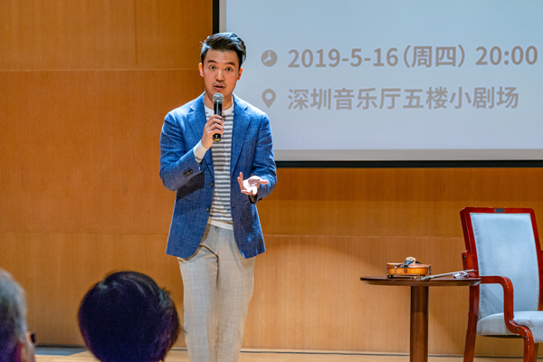 5月16日晚上八点,在深圳音乐厅五楼小剧场邀请了一百多名喜乐会会员,参加小提琴家陈锐的见面会。