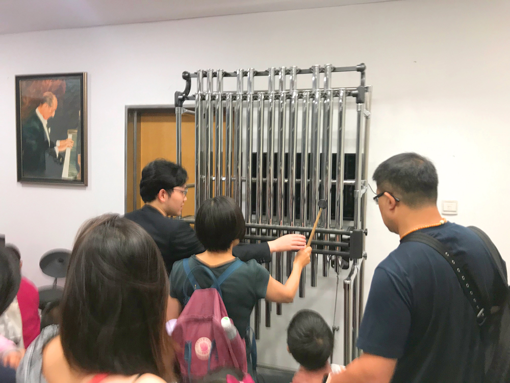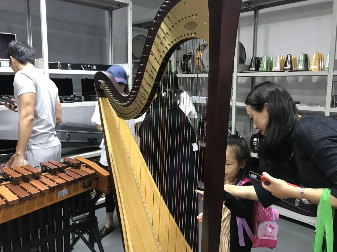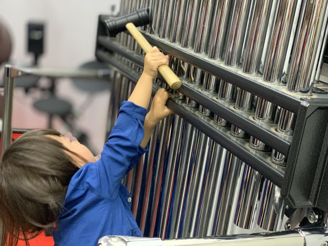 深入后台后,会员们移步一楼的乐器体验室,在工作人员的指引下亲自上阵,体验了多种乐器的演奏。在场的小朋友们表现出了极大的兴趣,每个人都迫不及待、跃跃欲试。