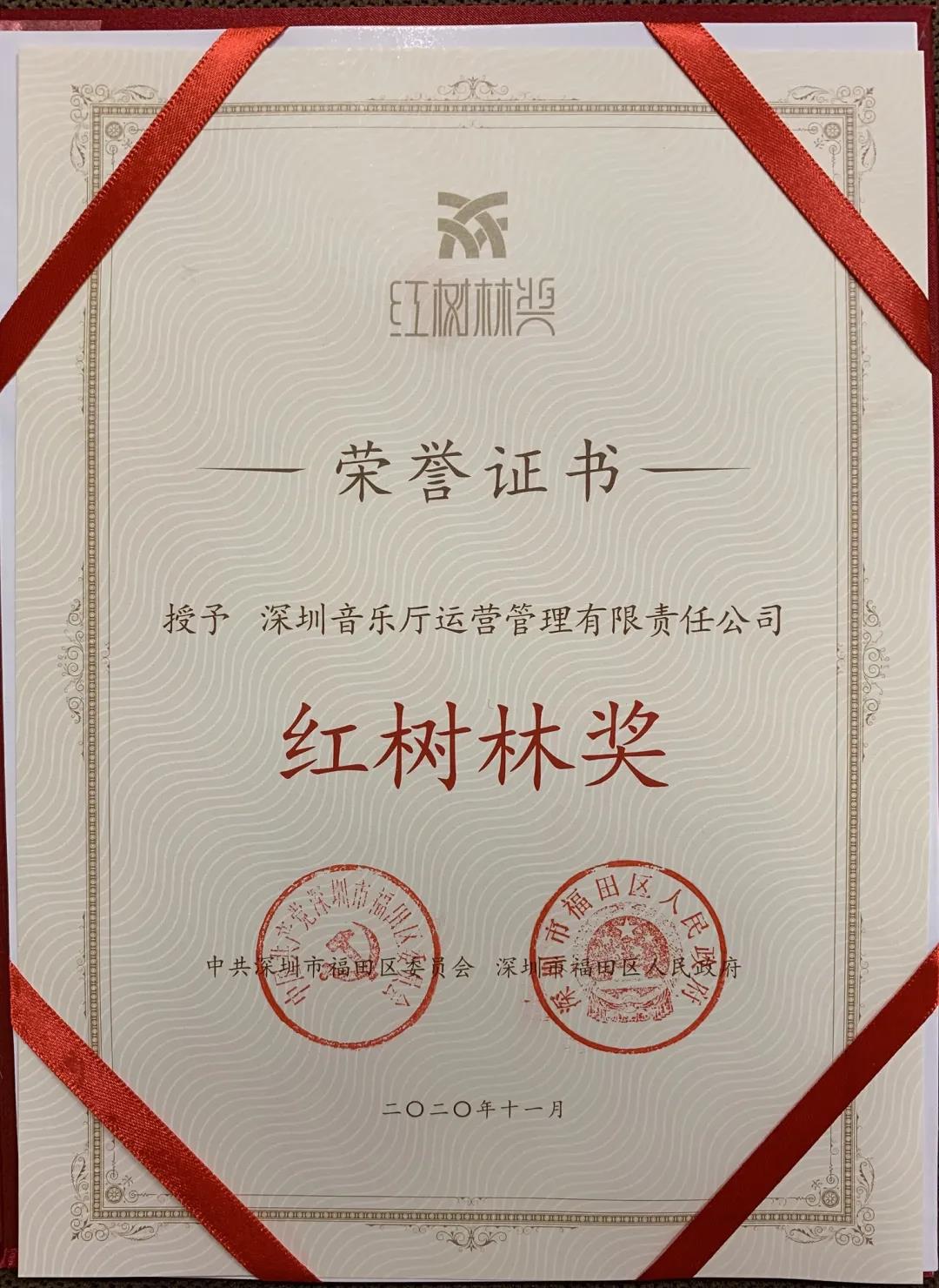 今年是深圳经济特区建立40周年,福田区建区30周年,回顾数十年来的发展历程,福田区各项事业取得显著成就,涌现了一大批先进集体和典型个人。为充分展现福田建区30年来的建设成就,激励全区人民和福田建设者以先进集体和个人为榜样,福田区首设“红树林奖”,对推动福田区建设发展作出杰出贡献的集体和个人进行表彰,并授予了深圳音乐厅红树林奖“先进集体”奖。