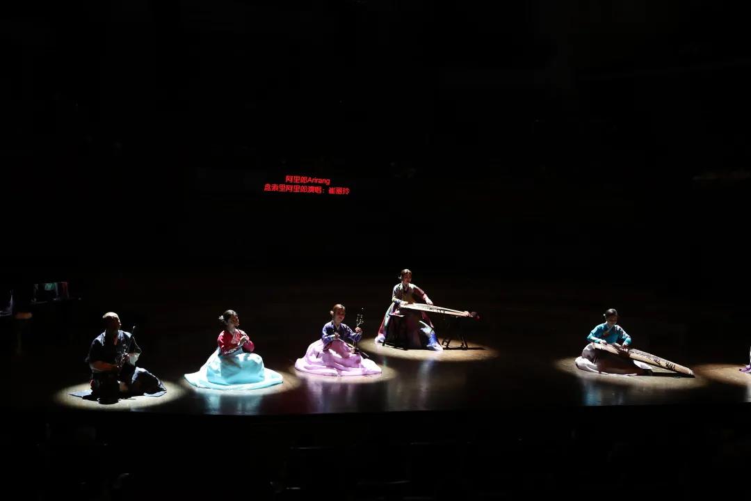 国家级非遗项目盘索里、阿里郎传承人崔丽玲携朝鲜族奚琴艺术非遗传承人金顺花、朝鲜族非物质文化遗产“朝鲜族短箫音乐”传承人朱贵花、朝鲜族长鼓演奏员徐亨虎、非物质文化遗产“朝鲜族横笛音乐”传承人太国率先登场,用一首观众熟悉且喜爱的朝鲜族传统歌曲《阿里郎》拉开了演出的序幕。