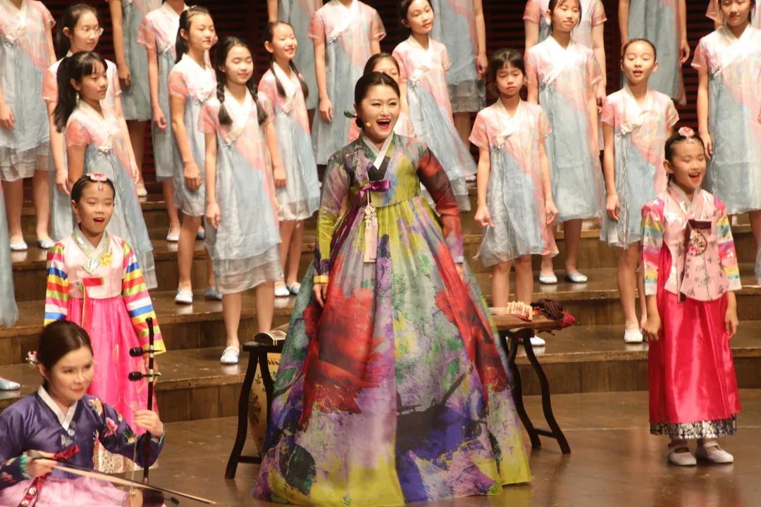 来自西双版纳的飞越彩虹傣族章哈童声合唱团和来自吉林的飞越彩虹朝鲜族童声合唱团的孩子们与深圳音乐厅“小金树”多民族童声合唱团的孩子们合作带来《阿里郎》《桔梗谣》《依拉灰》《阿卡拉》等取材于传统民间故事的音乐作品,孩子们清脆悠扬的童声,淳朴真挚的笑容,十分令人感动。