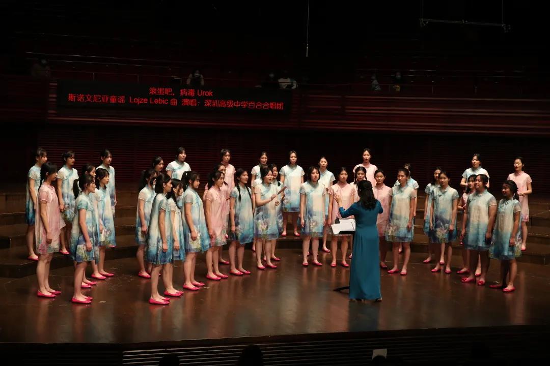 作为一场以童声合唱为特色的音乐会,深圳代表除了全新亮相的深圳音乐厅“小金树”多民族童声合唱团参与外,深圳“文化名片”,深圳高级中学百合合唱团的精彩表现也让人赞叹不已。音乐会现场,他们带来《夏秋谣》《月亮婆婆》《花腰彝弦》《萤火虫之光》《滚蛋吧,病毒》等多首动听歌曲,为绚丽的多民族特色增添属于深圳少年的靓丽!