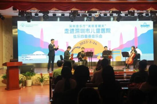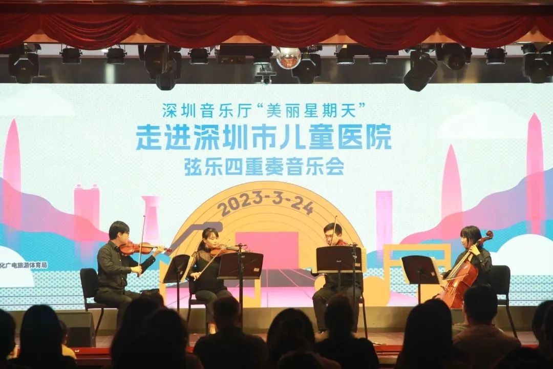 3月24日,深圳音乐厅“美丽星期天”公益演出携手来自香港中文大学(深圳)音乐学院的四位优秀青年演奏家吕欣、张晋浩、谢梓翀和周莹,一同走进深圳市儿童医院,为医护工作者献上了一场典雅动人的弦乐四重奏音乐会。