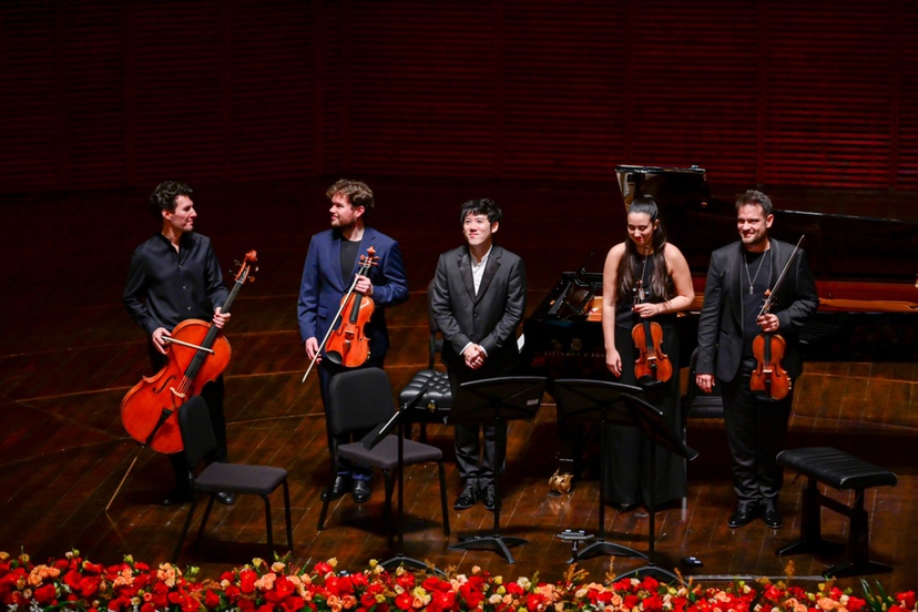 张昊辰在采访中透露了一个小插曲。小提琴家马克・布赫科夫、莉尔・瓦金斯基所乘航班因风暴延误,于演出当日凌晨抵达深圳,在简短休息数小时后便与中提琴家蒂莫西・里多特、大提琴家丹尼尔・米特尼茨基和从欧洲赶来的张昊辰汇合。然而正是这份“非常规”催生了舞台上的鲜活张力,顶尖艺术家在有限时间中凭借深厚修养达成了即兴式的深度共鸣。演出中,五声部如精密齿轮咬合,层层推进至辉煌高潮,观众席爆发出近乎本能的热烈掌声。张昊辰坦言,选择舒曼五重奏恰因其“熟悉度”可保障短时排练下的艺术完整性,但结果远超技术层面——那是音乐家之间无需言语的信任,也是一种令演奏者十分享受的化学反应。
