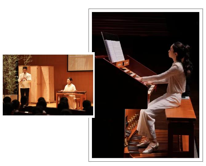 该项目以“拓宽艺术视野、提升审美素养”为核心,创新构建“特色资源+专业师资+跨界融合”三维课程体系,将深圳音乐厅的独有资源转化为优质美育内容,打造差异化的校外美育品牌。深挖管风琴、交响乐、古琴等特色资源,开发传统课堂难以触及的特色课程,让青少年感受中西音乐文化的交融之美;邀请专业演奏家、非遗传承人、深圳交响乐团等参与教学,开放排练观摩通道,让青少年零距离感受艺术魅力;融合音乐、礼仪、文学等跨学科元素,打造个性化课程,兼顾专业性与趣味性,真正实现“以美育人、以文化人”,培养青少年的多元思维与创新能力。在服务模式上,该项目还紧扣深圳数字化城市建设步伐,创新推行“云端课堂+线下实践”双轨运营,打破地域与空间壁垒。线下优化场馆空间,组建专业服务团队,打造沉浸式艺术体验;线上让高雅艺术跨越物理边界走进校园,实现数千名学生云端同步学习,真正实现美育资源全域覆盖。截至目前,该项目已服务深圳市近30所中小学,惠及学生逾3300人次,有效缩小了区域、学校间的美育资源差距,让更多孩子享受优质艺术教育。