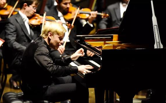 一头金发的马洛菲耶夫,高挑瘦削,手指修长,看上去还有点稚嫩羞涩。他落座后将琴凳调低,迅速进入状态。面对即将开始的被称为最难钢琴曲之一的“拉三”的挑战,他显得轻松自如。