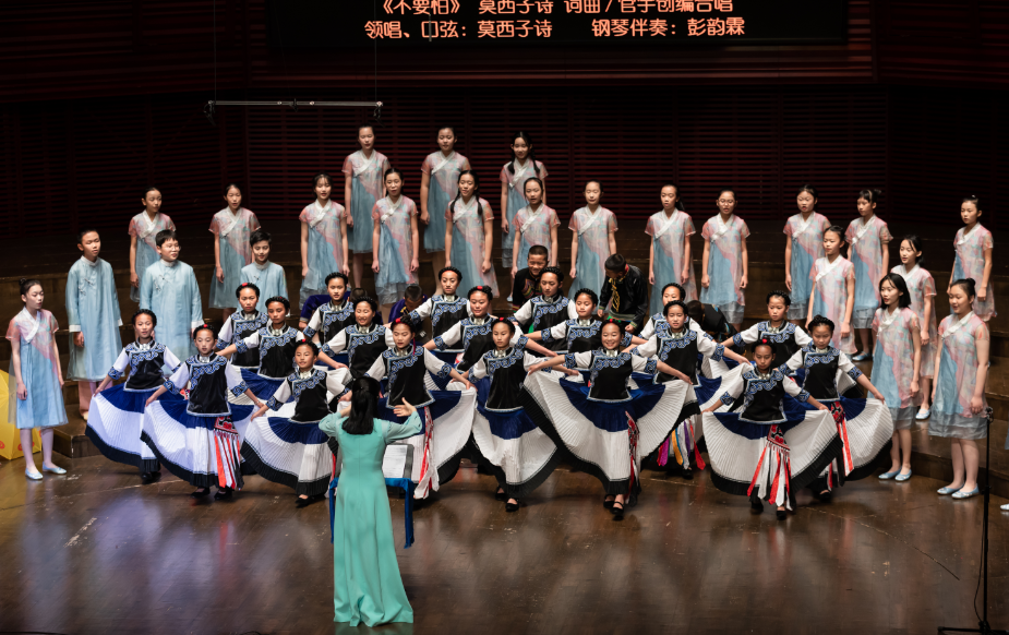 我相信“从五湖四海来”,这句话大家已经在宣传语中、海报中,看了无数遍。但你坐在音乐厅现场时,看到所有民族,在最后,都穿着华丽的服装登台时,那些绚烂的颜色,是中国远古流传下来的颜色,更是大地上随处取材的颜色。这些颜色给予了多少歌唱家、作曲家、作词家灵感,更渲染了孩子们的歌声,一开口,那样大气,那样磅礴。