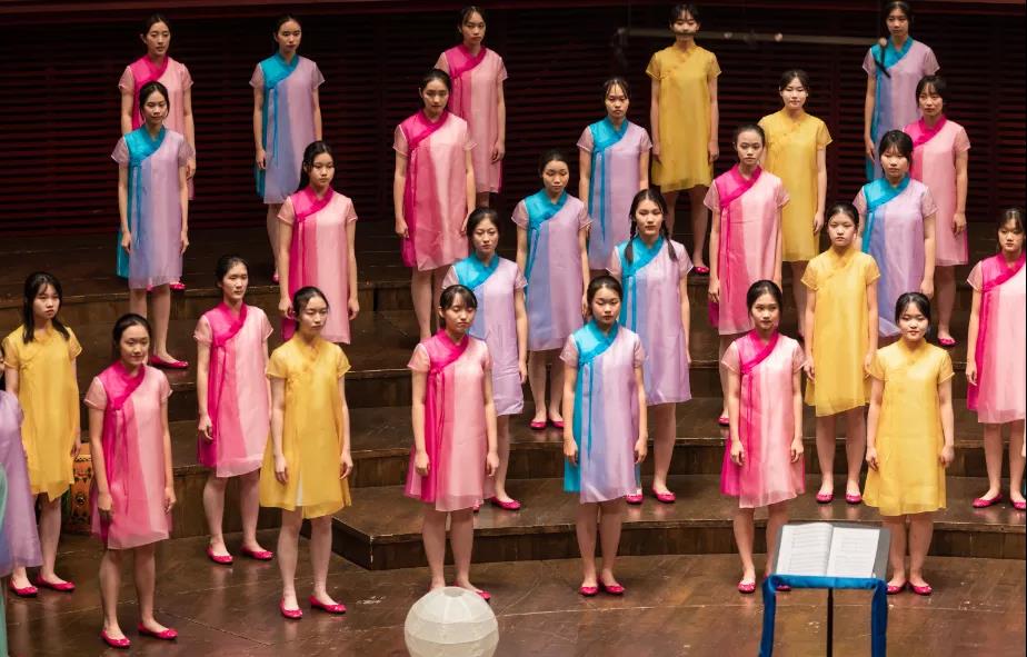 当深圳市高级中学百合合唱团的女孩子们,从舞台背侧的观众席两侧走上来时,好像天上飘来了天使,她们优美又整齐,是那种有秩序的美。而这种美的难得是无法用单一感官衡量的。这需要视觉、听觉等多个感官的配合,才能营造出“天堂”的美感。就像我们在2020年初夏学会的告别那样,与很多人与事说再见后,继续像鸿雁那样飞啊飞,飞啊飞。