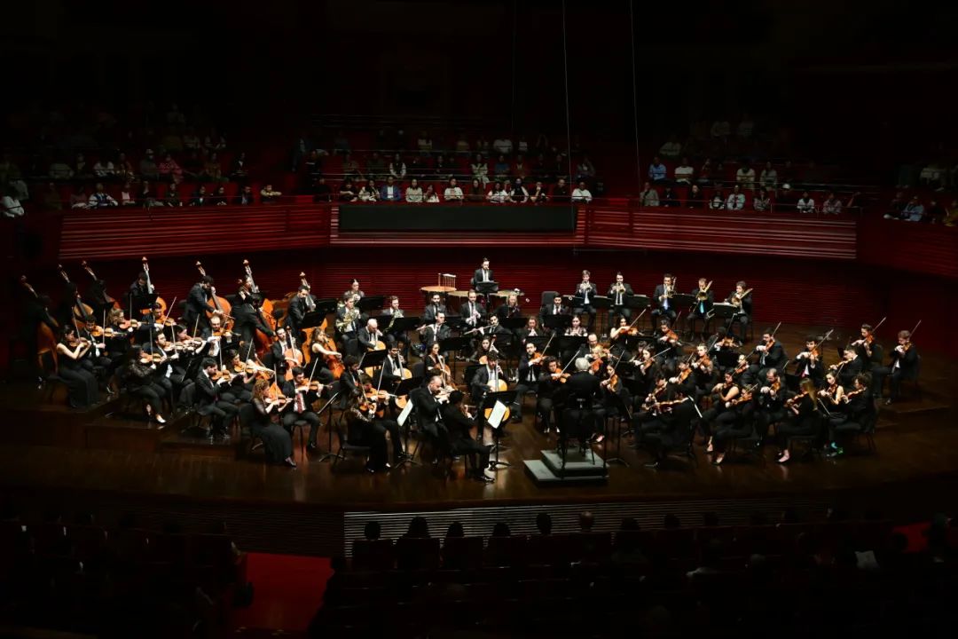 乐团此次来中国巡演的规模,是含有8把贝司的三管编制,乐迷都说诚意满满。舞台上的摆放仿维也纳爱乐,即一提和二提分列舞台前端两侧,贝司和大提琴等低音弦乐置舞台左侧。昨晚的演奏,普遍年轻的乐手们在大师的指挥下倾情投入,呈现出较高的演奏水准,比我想象中好很多。尤其是木管和铜管声部,在西贝小协和下半场柴可夫斯基《f小调第四交响曲》中均有卓越表现。最后加演了柴可夫斯基的《天鹅湖》选曲。