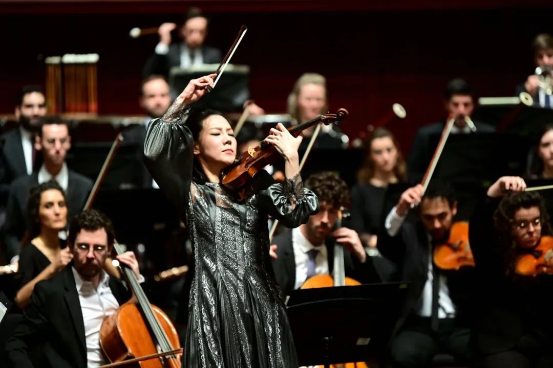 康珠美昨晚的西贝小协,除了开头那段凄美的旋律略觉平淡外,整体的完成度非常高,其演奏比2019年那次与深交的合作更自信,也更成熟,声音高贵且不失激情。特别是G弦上的旋律,如第二乐章和第三乐章开头,她的拉奏力度很大,情感涌动,将手中那把斯特拉迪瓦里古琴的能量发挥到极致。看上去娇花照月,弱柳扶风,气度不逊男演奏家。第一乐章的华彩段落,她技术上游刃有余,力量分配得当,音乐流畅而均衡。在对话中,我曾问她,演奏西贝小协最挑战的部分在哪里。她说技术上并无挑战,唯一挑战是与乐队融合,因为这部作品的交响性很强,独奏小提琴也只是它的一个声部,同时还要体现自己的个性。她的这个意思在第二乐章可以依稀感受到。例如乐章开始,在木管和铜管的浓重低音前奏后,小提琴也在低音区以浑厚、深情的声音缓缓唱出。随着竖琴等更多乐器的加入,小提琴一直与整个乐队融为一体,而其独特的伤感旋律却又清晰可辨。整个第二乐章听来都有一种感人的力量。第三乐章,康珠美的技术优势得以进一步发挥,但也听到一小节快速连音不够清晰,有“吞音”之嫌。瑕不掩瑜吧。康珠美返场加演了一段巴赫小无。