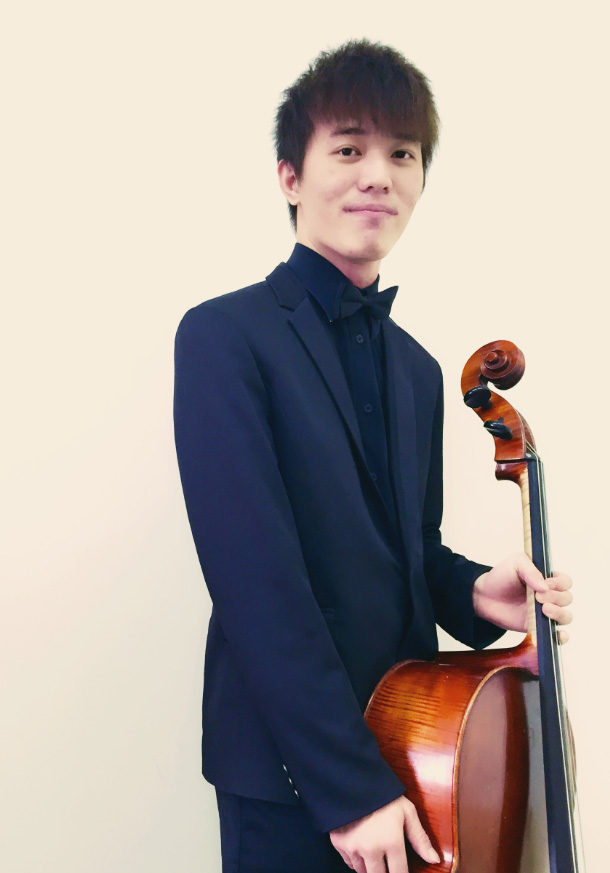 出生于台湾,大学毕业于中央音乐学院,师从著名大提琴家朱亦兵教授。与朱亦兵大提琴乐团、爱乐汇轻音乐团、国魂唤国粹室内乐团、西区爱乐室内乐团、北京节日室内乐团、星空弦乐团合作巡回演出450场以上的音乐会。为各国领导人演奏,参与国家大剧院管弦乐团音乐会。参与各大电台节目录制,包括中央电视台CCTV《文化公开课》、《音乐公开课》、《中华情》、《风华国乐》,北京卫视《音乐大师课》,湖南卫视《Hi 歌盛典》,江苏卫视《蒙面唱将》,浙江卫视《梦想的声音2》、《中国好声音 》节目及电影电视配乐录音演奏。是张靓颖、 张惠妺 、曹格 、华晨宇、郁可唯 、李志 演唱会大提琴乐手。