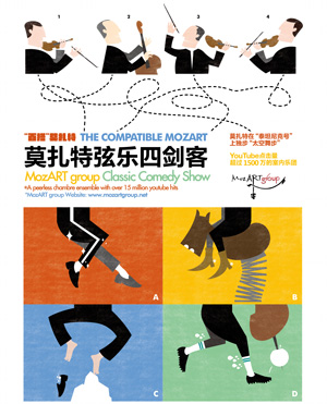 手中的弓弦化身宝剑,向严肃的古典音乐发出挑战。莫扎特卡巴莱弦乐四重奏颠覆了音乐厅的传统气息,让幽默走进音乐,消灭音乐厅里的“瞌睡虫”,唤醒人们心中的音乐激情。