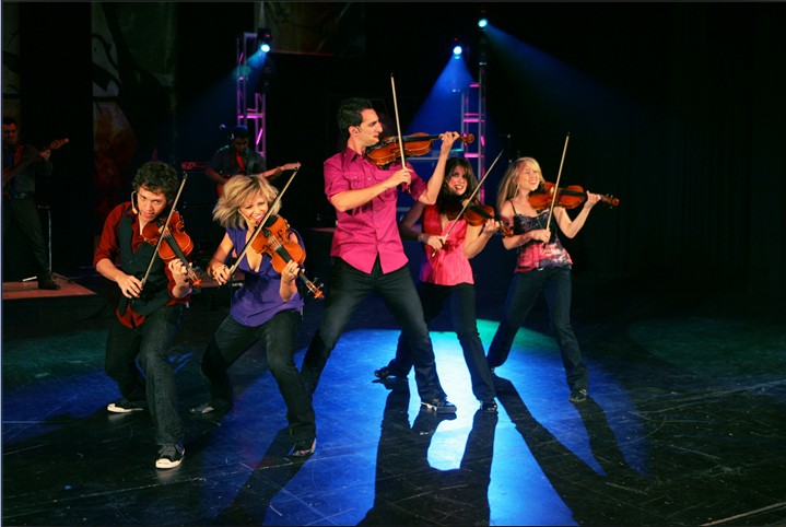 “八彩虹”于1996年由加拿大“五人组娱乐公司”创办,由5名小提琴手、1个打击乐手、1个吉他手、1个贝司手组成。“八彩虹”的演出者个个能拉善舞,不仅是小提琴演奏的高手,而且有较高的舞蹈造诣,小提琴华美的乐音与演奏者热情炙烈的舞蹈相得益彰。